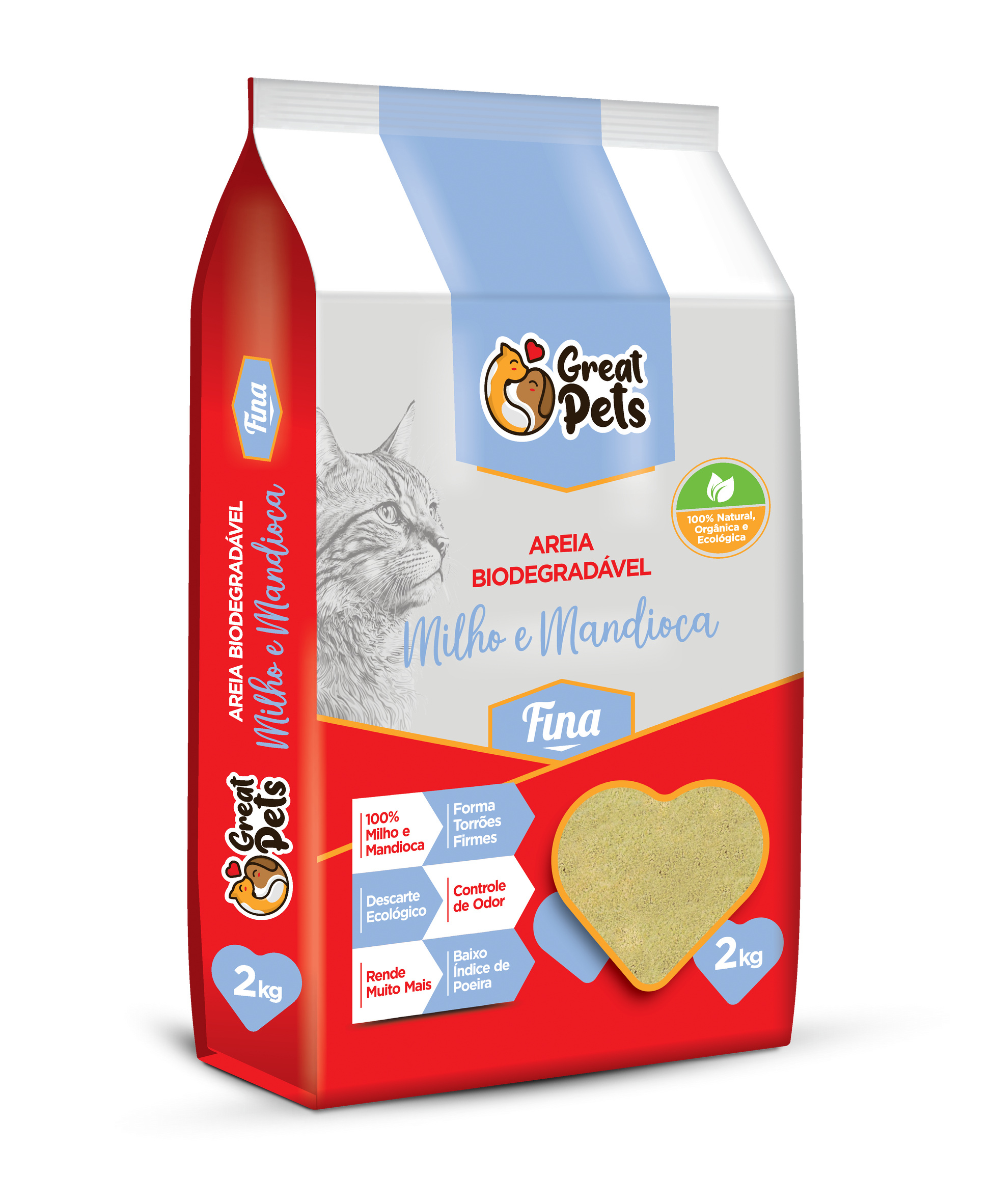 Areia Higiênica Great Pets Biodegradável Fina para Gatos 2kg