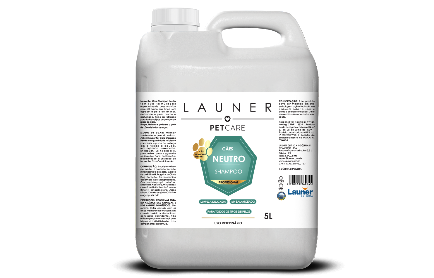 Produto de Higiene Animal/ Shampoo Neutro 5lt- Launer Pet Care