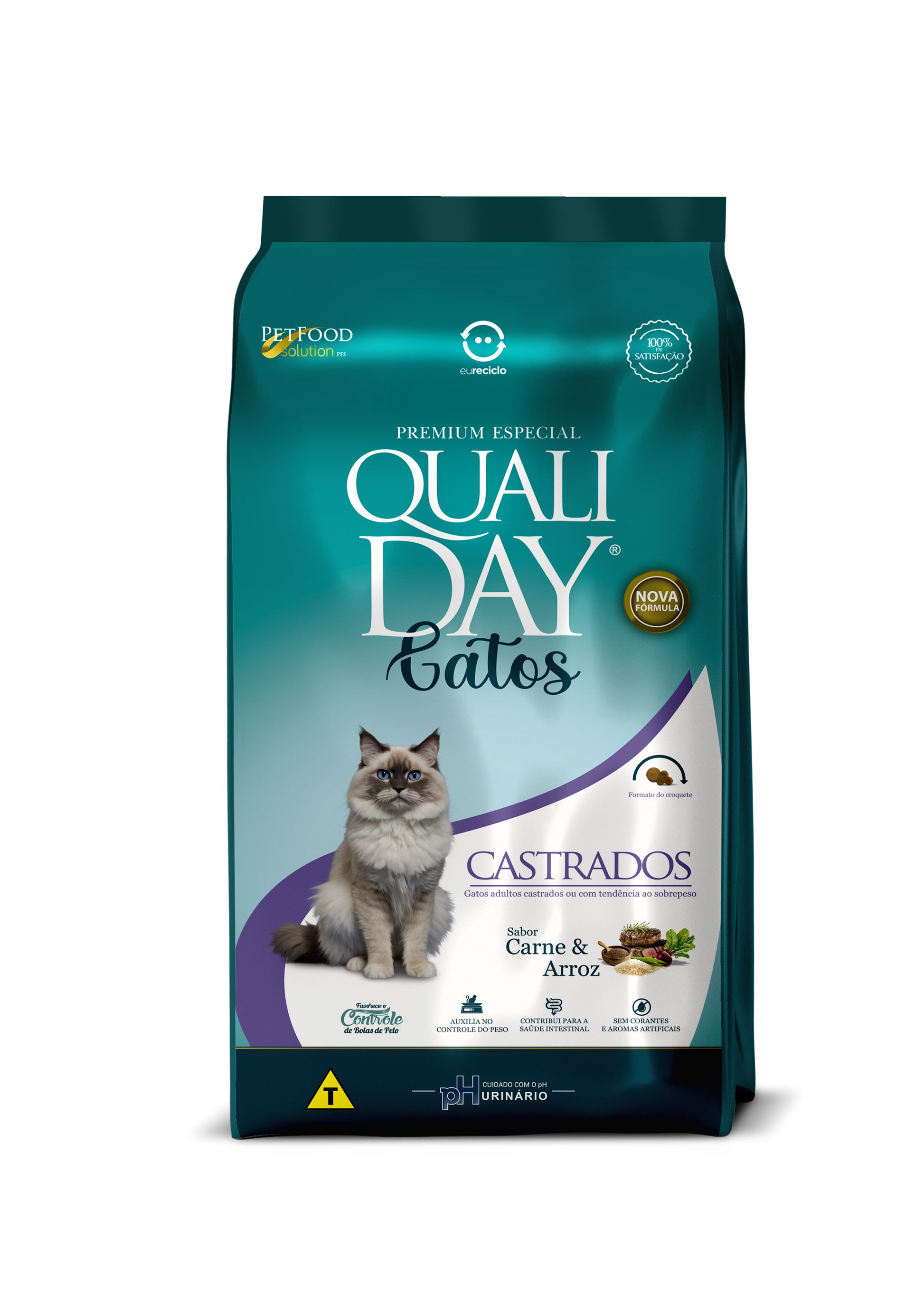 Ração para Gatos Qualiday Gatos Castrados - Carne, Arroz & Vegetais