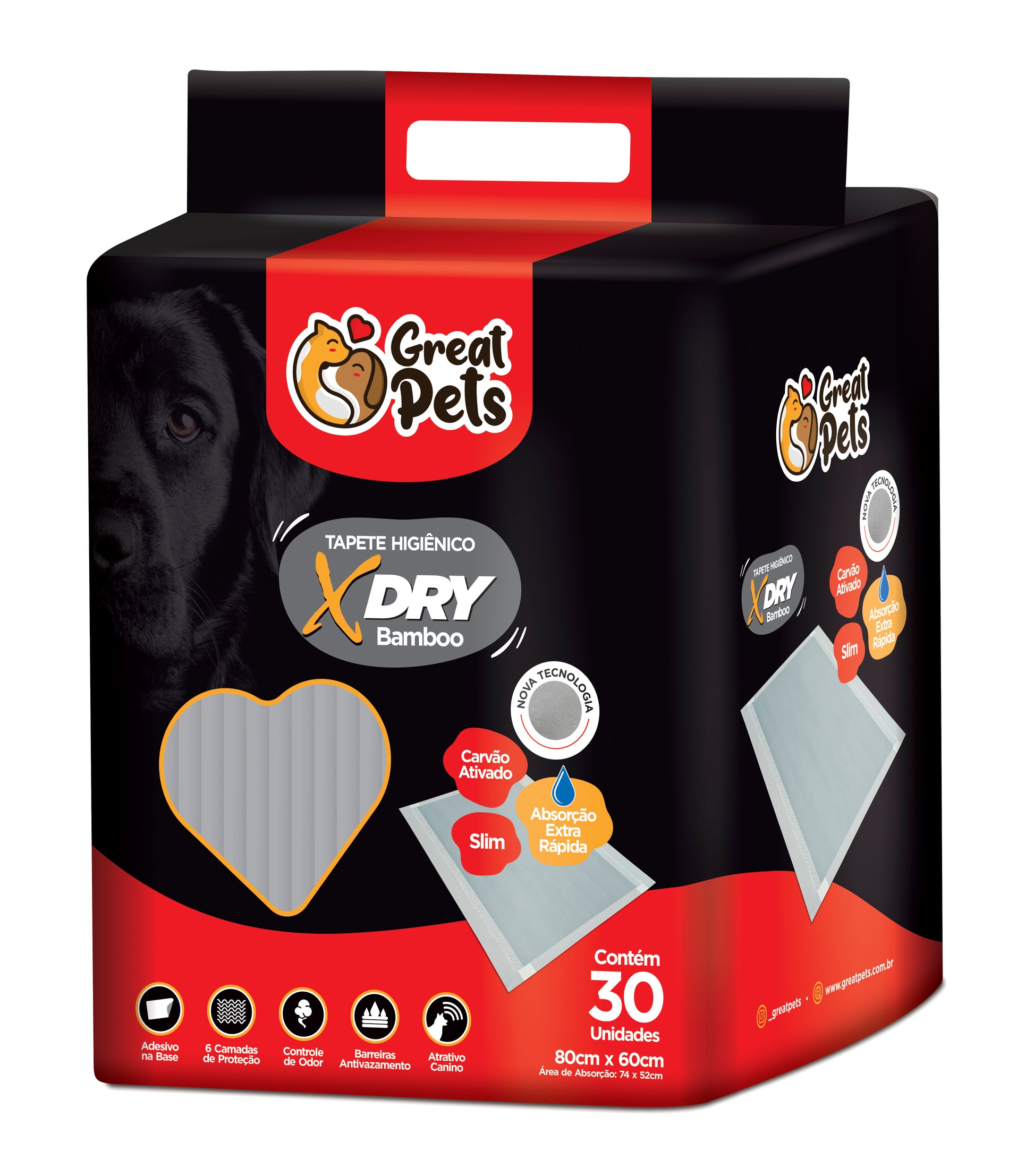 Tapete Higiênico Great Pets Bamboo Com Carvão Ativado 80x60cm 30 un